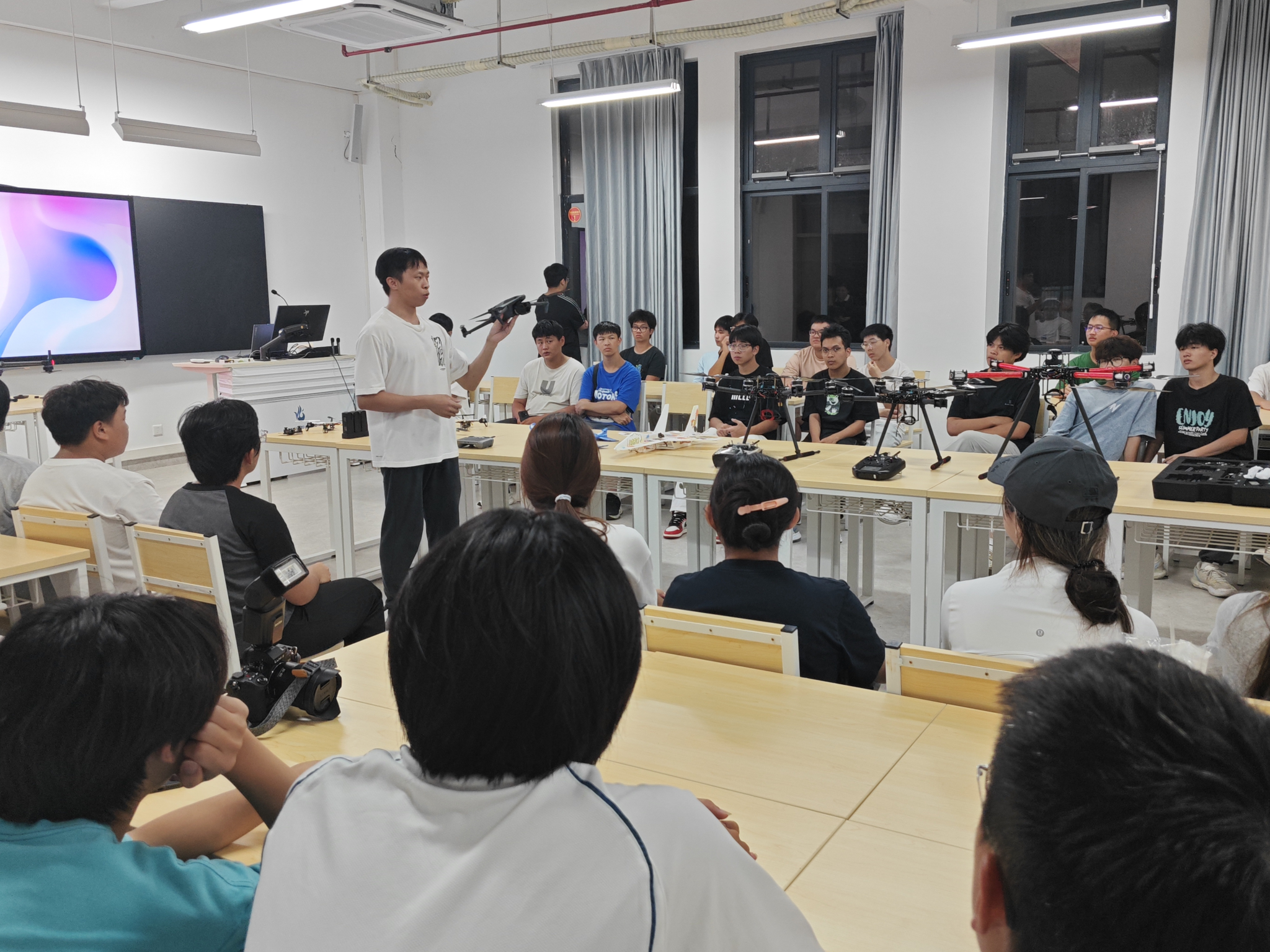 图2 刘俊水老师展示无人机