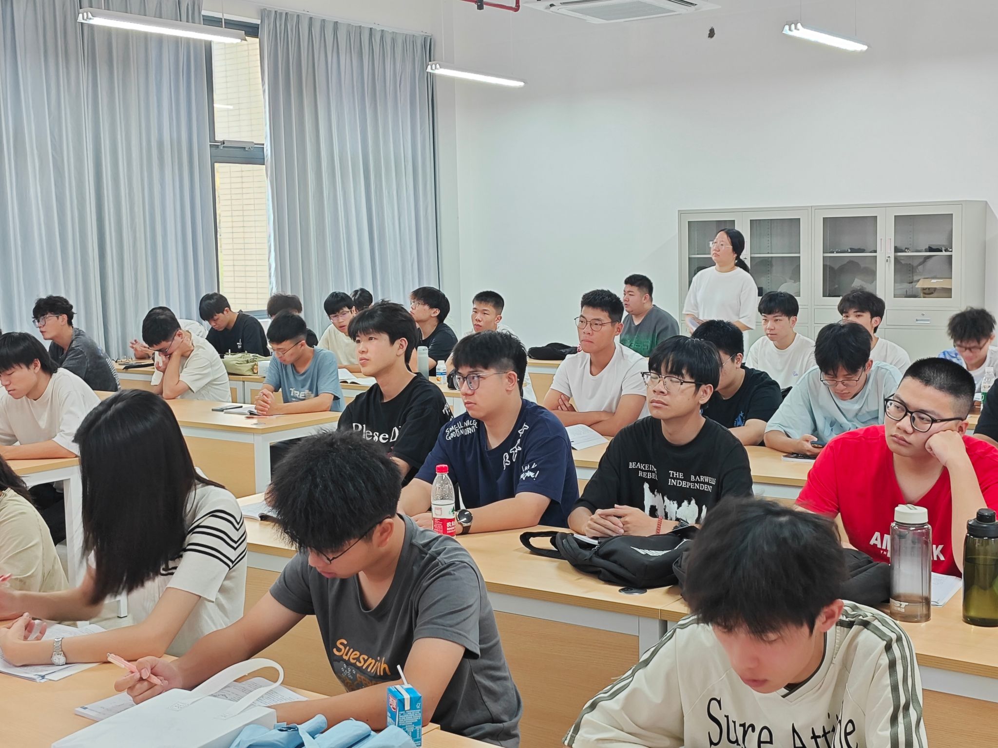 巡查组以 “查教学秩序、看教师状态、问员工适应、督保障落实” 为核心,采取 “随机进班、现场观察” 的方式,逐一走访新生课堂与实训室。巡查过程中,经理潘丹及教学副经理郑永芹重点查看了新生课堂的教学秩序、授课教师到岗及备课情况,同时关注新生的课堂适应度与学习状态。从巡查结果看,首日教学整体呈现 “开局稳、状态佳、保障实” 的良好态势:全体授课教师提前到岗调试设备,教案设计聚焦新生 “从高中到大学” 的认知过渡;新生精神饱满,课堂互动积极,对专业实训设备展现出浓厚探索欲。