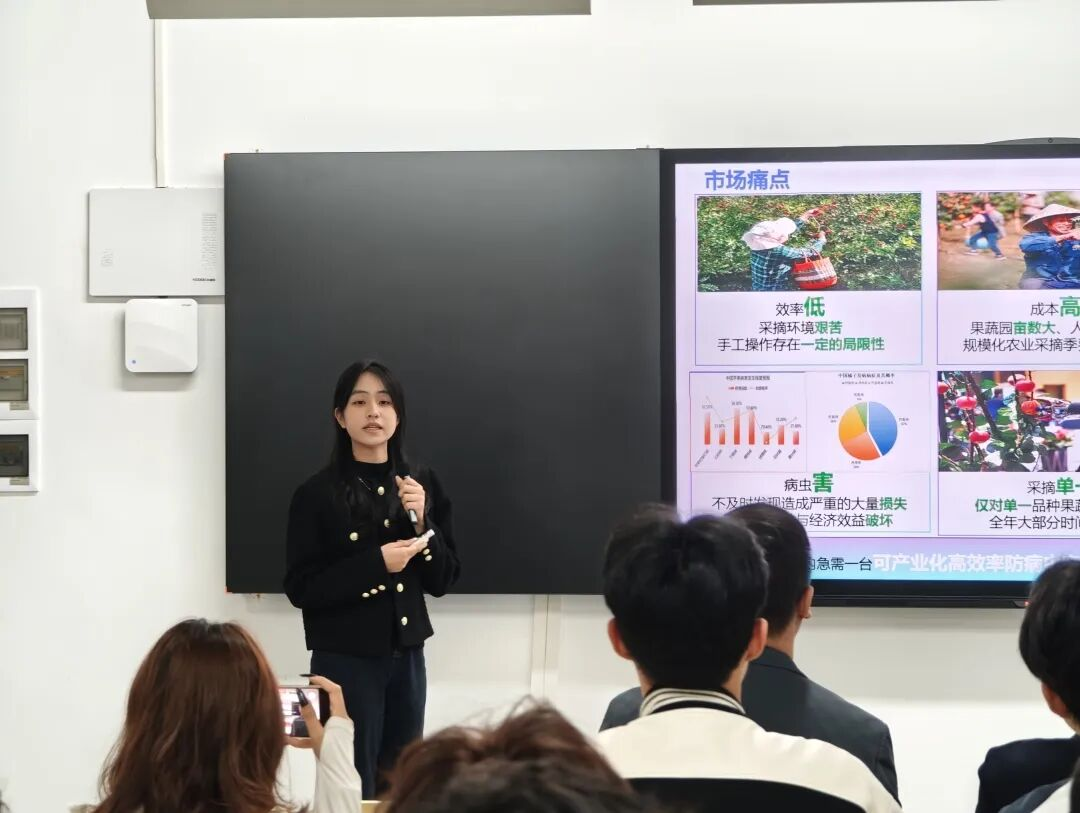 本次参赛的创业项目紧密围绕未来技术应用领域发展趋势,聚焦智能硬件创新、AI技术落地等核心方向,深度融合智慧监测、机器人等前沿人工智能技术,展现出鲜明的学科特色与跨领域整合能力。在展示与答辩环节,各团队代表通过PPT演示、实物展示、现场模拟等方式,清晰阐述项目的创新价值、技术原理、市场前景及盈利模式。面对评委专家提出的“核心技术竞争力”、“项目落地可行性”、“成本控制方案”等专业问题,同学们结合前期市场调研数据与竞品分析结果从容应答,逻辑清晰、论证充分,展现出扎实的专业基础与良好的商业素养。邱漠河、张珊、周珩三位评委结合自身专业领域,对各项目逐一进行细致点评,既肯定项目的创新亮点,也针对选题聚焦度、成果转化路径等方面提出改进建议,为项目后续优化指明方向。