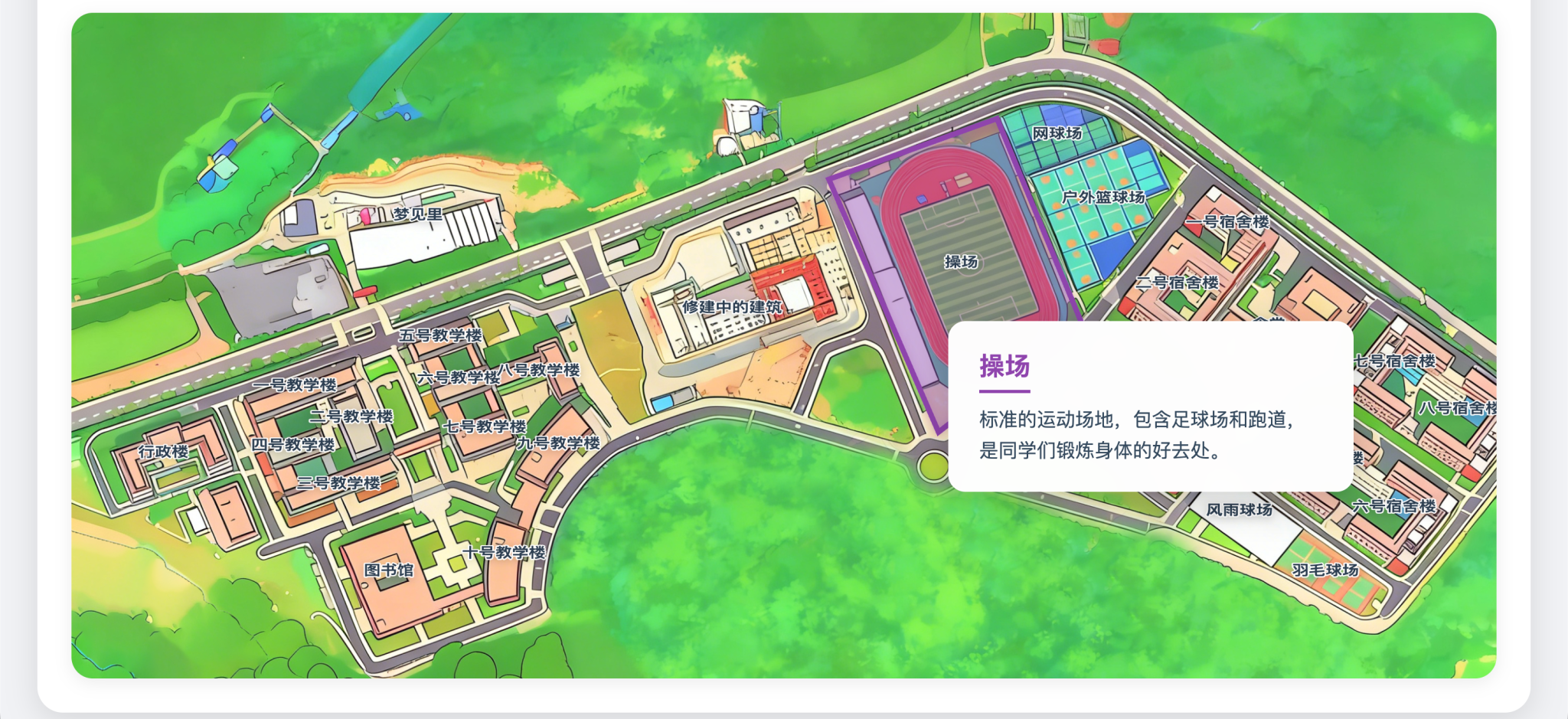 旨在通过Web技术将平面的校园地图“活”起来。不仅仅是一张指路的图片,更是一个信息聚合的窗口。用户可以像探索游戏一样,探索校园的每一个角落——从教学楼到操场,从食堂到宿舍。通过交互式的引导,帮助新生快速熟悉环境,帮助访客了解校园布局,体现校园信息化建设的便捷与智能。