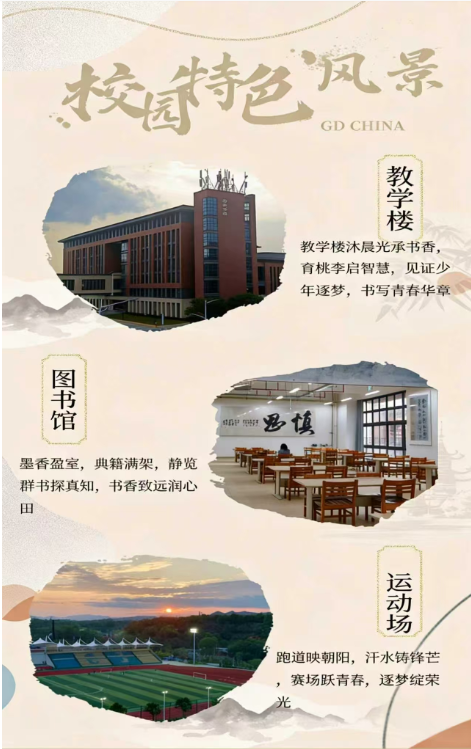 本作品以“中式美学赋能校园文化”为核心,融合淡彩水墨纹理与现代校园实景,既体现传统文化雅致质感,又贴合校园空间的青春属性,通过视觉与文字联动传递成长温度。
