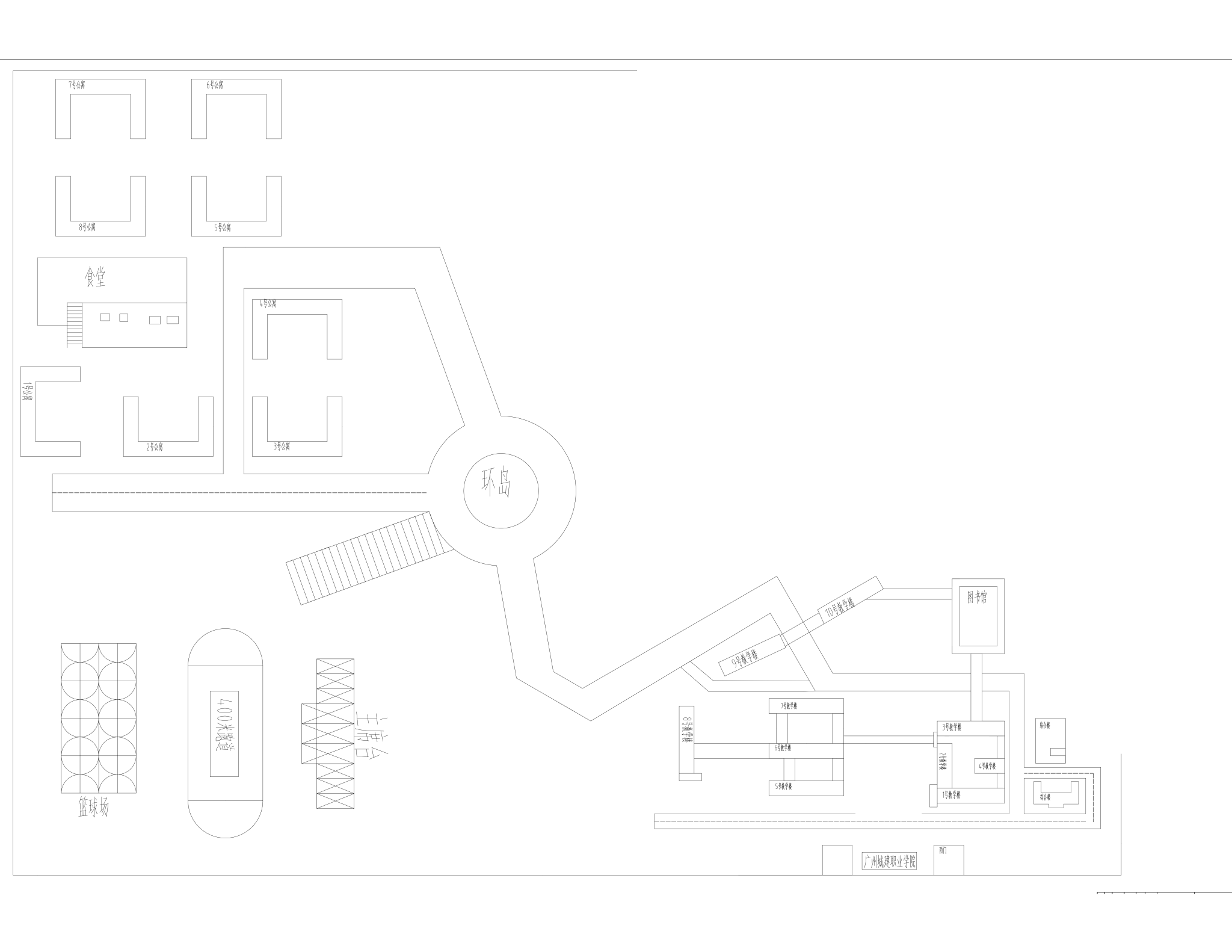 本作品是williamhill官网(清远校区)的平面图,其主要建筑有图书馆,1~10号教学楼,1~8栋公寓,食堂等等,进入校门经过宏伟的教学楼、充满激情的操场、温馨的宿舍公寓、美味的食堂,让我们感受到充实而又活力的生活。该校区占地面积700多亩,校园广纳七百余亩,春有繁花覆径,夏有浓荫蔽日,秋有桂香满庭,冬有松翠凝霜,四时皆景,步步生趣,既是治学修身的净土,亦是逐梦前行的沃土。
