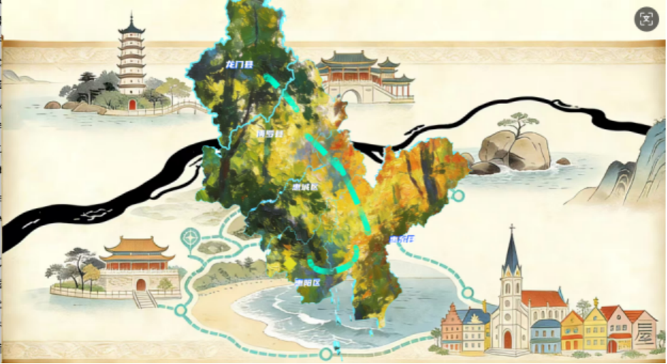 本作品惠州区域3D地图,是文化的“容器”、生活的 “工具”,更是情感的 “纽带”。它以艺术化的形式,将惠州的历史、当下与未来编织在同一个空间里:既让本土文化从 “散落” 走向 “聚合”,也让实用功能服务于生活与发展,更让个体与地域的情感实现了可视化连接。从一张纸到一个 “立体的惠州”,这便是手绘地图最珍贵的价值 —— 让空间有温度,让文化有载体,让情感有归处。