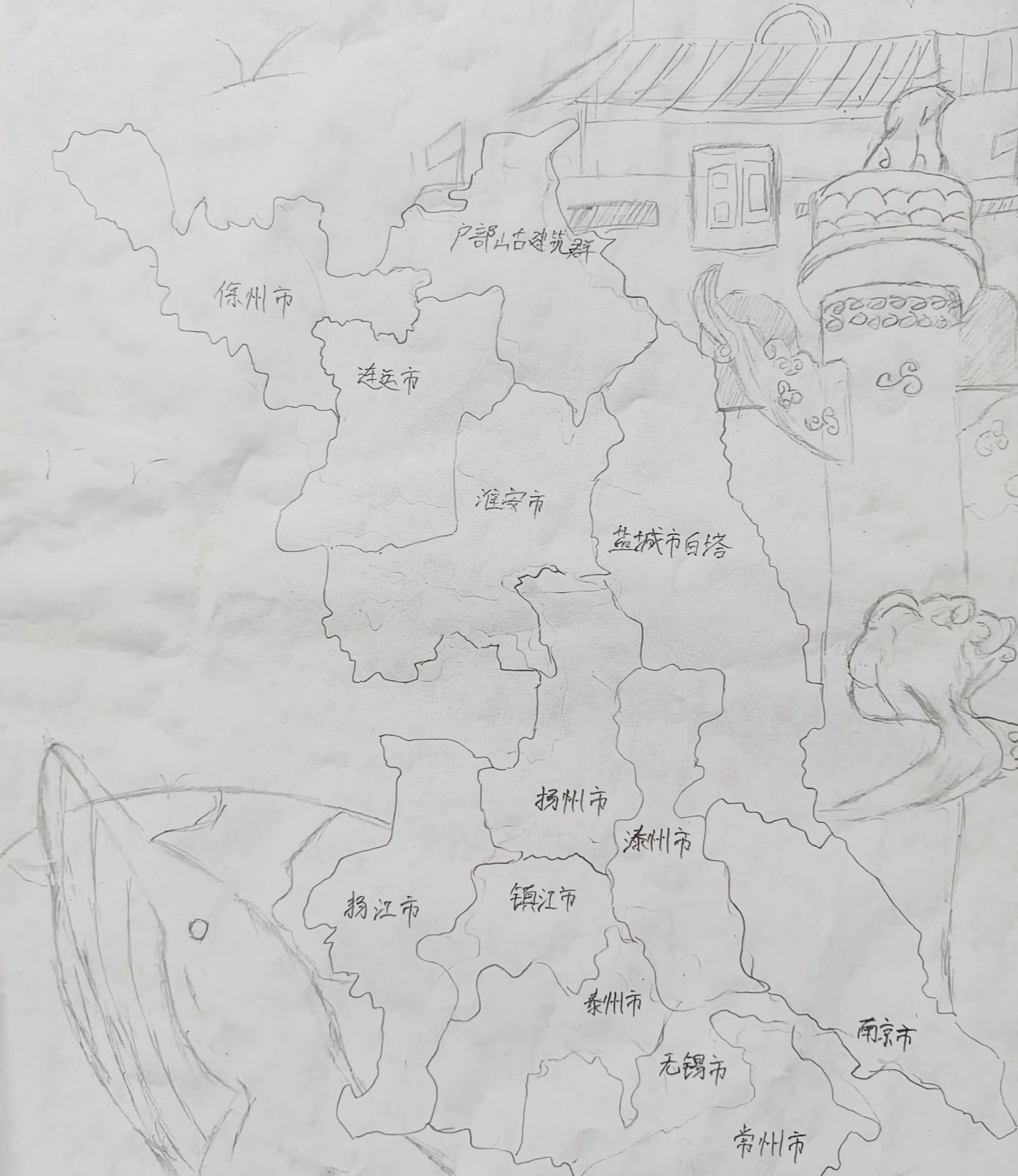 本作品是一份聚焦江苏省的区域旅游导览图,核心覆盖徐州、连云港、淮安、盐城、扬州、泰州、南京等多座省内重点城市—— 主题构思锚定江苏 “大运河文化带+长江经济带” 的文旅核心脉络,选取这些城市既包含楚汉文化(徐州)、淮扬文化(扬州)、金陵文化(南京)等不同地域文化类型,也覆盖了沿海、平原、水网等多样地理风貌,意在通过一张图浓缩江苏 “文化+自然” 的文旅特色,是为游客快速认知江苏文旅资源而设计的实用导览工具。