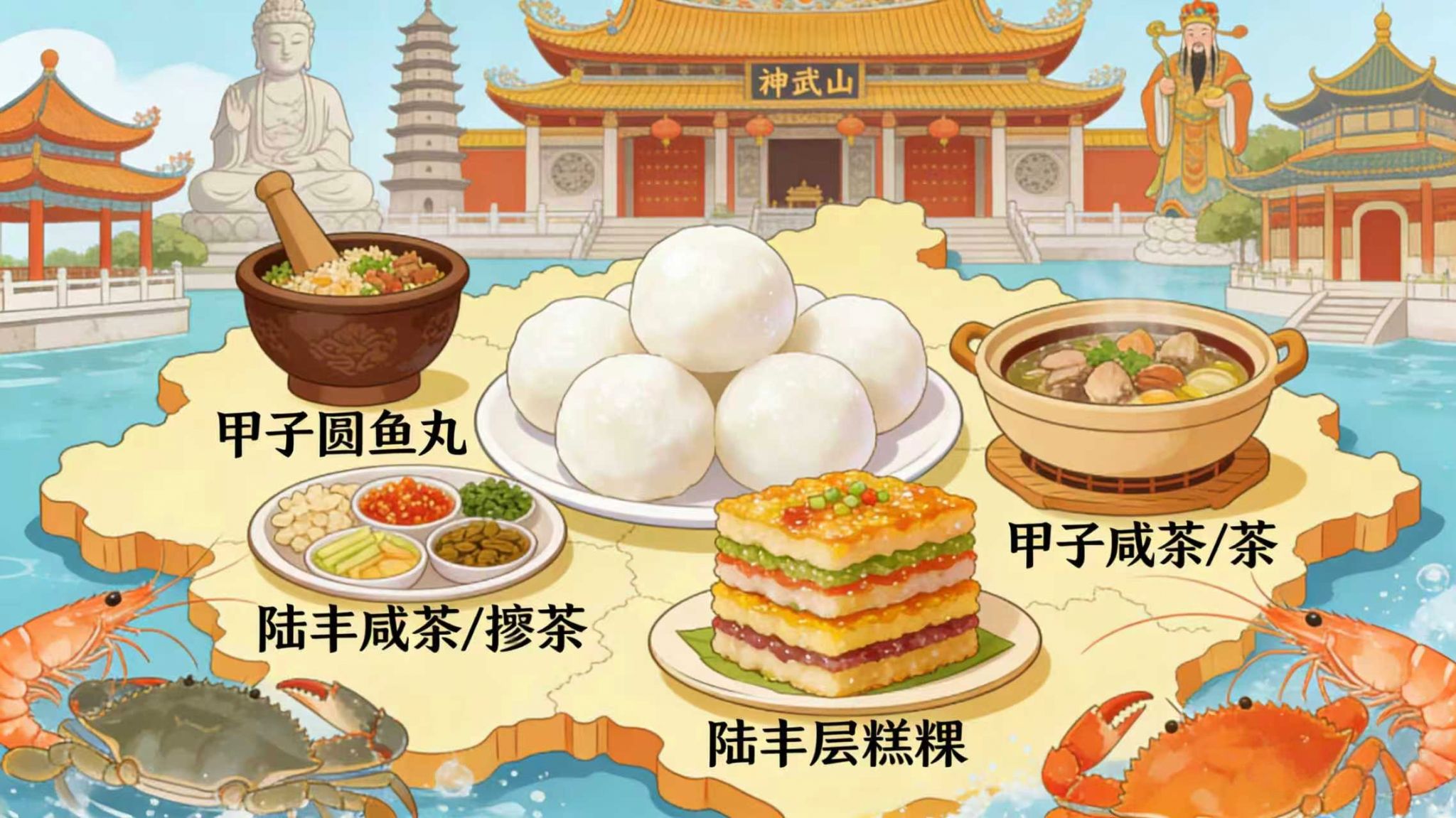 本作品以“美食+文化地标”为核心线索,深度串联广东陆丰的特色饮食与地域文化,旨在为游客提供清晰、直观的指引,帮助其快速掌握当地必尝美食、体验技巧及文化游览重点,打造“味觉+视觉+文化”的多维游览体验。