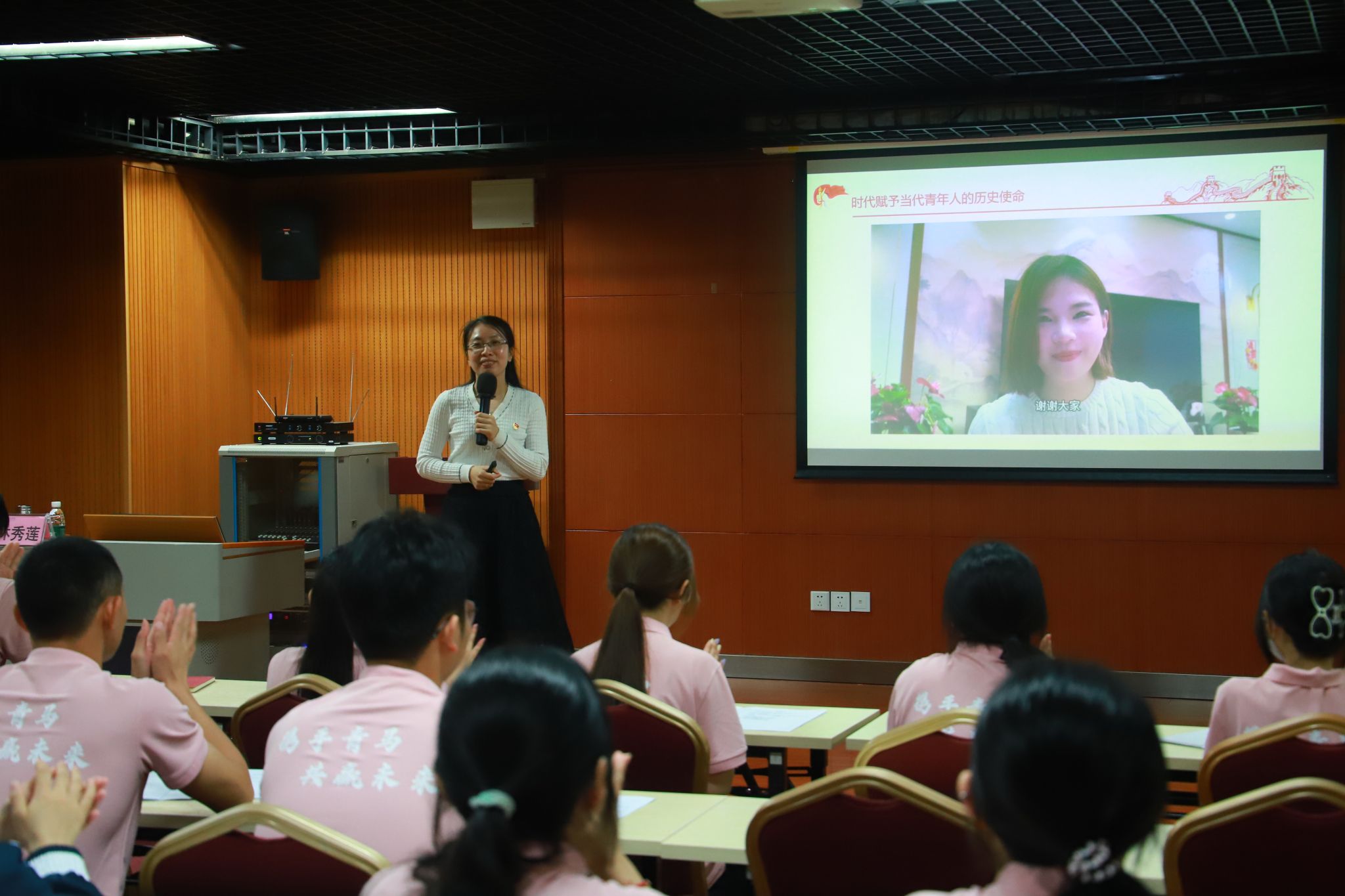 党委组织部、统战部部长吴辉军以《以学铸魂,筑牢青年的理想信念》为题,通过对习近平青年观的阐述,引导广大学员深化于学、内化于心、外化于行,做习近平新时代中国特色社会主义思想的坚定信仰者、积极传播者和忠实实践者。团委书记甄伟文以《牢记嘱托,我们都是收信人》为题,号召广大学员要坚定不移听党话、跟党走,争做有理想、敢担当、能吃苦、肯奋斗的新时代好青年。发展规划教学质量办公室王树勇教授以《珍惜大学时光,不负青春年华,做新时代有志青年》为题,通过自身的经历,与学员们进行青春对话,教育广大学员珍惜当下,让生活充实,让青春闪光,不负时代,不负韶华。马克思主义公司教师林秀莲通过多个真实案例,阐述了中国青年的使命担当;专职团干杨舒琦通过老员工日常存在问题阐述了文明礼仪的重要性;经济与管理公司教师邓肖敏通过案例分析、课堂互动等方式,讲述了老员工在面对压力与挫折时的应对方法。员工曹小莹分享了她在校期间工作、学习情况及毕业后的考研经历,号召广大学员要注重学历提升,提高就业竞争力。