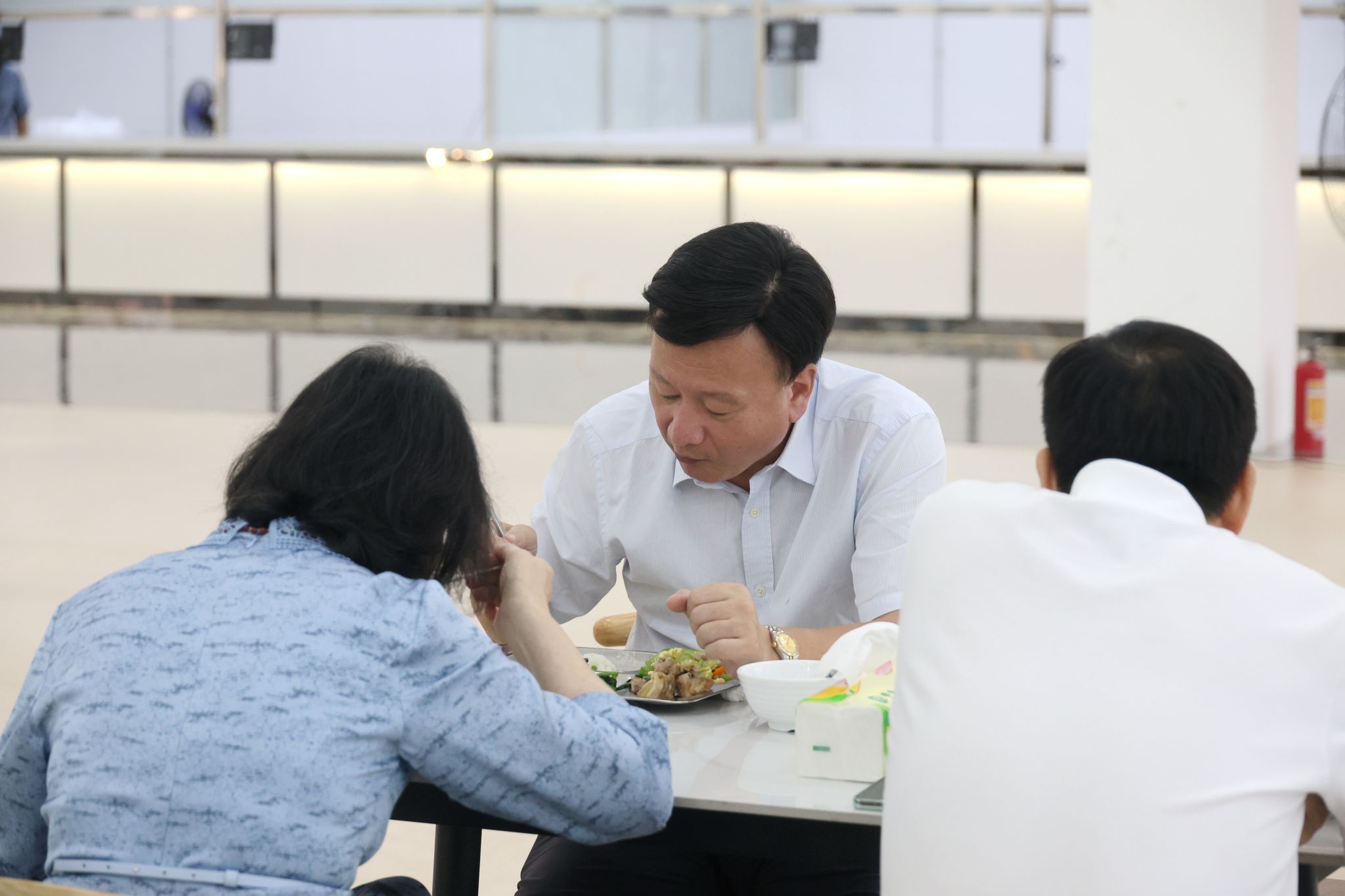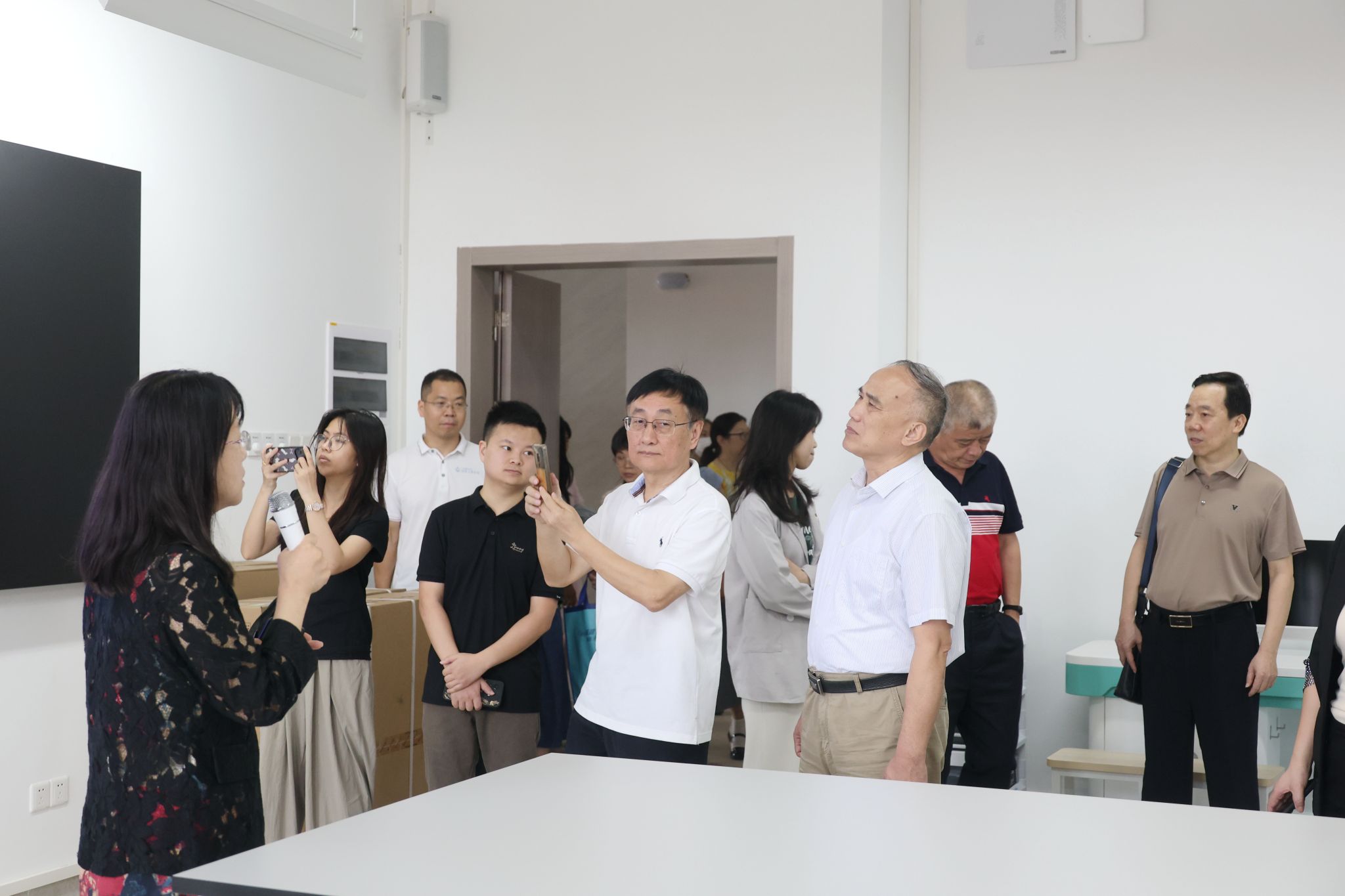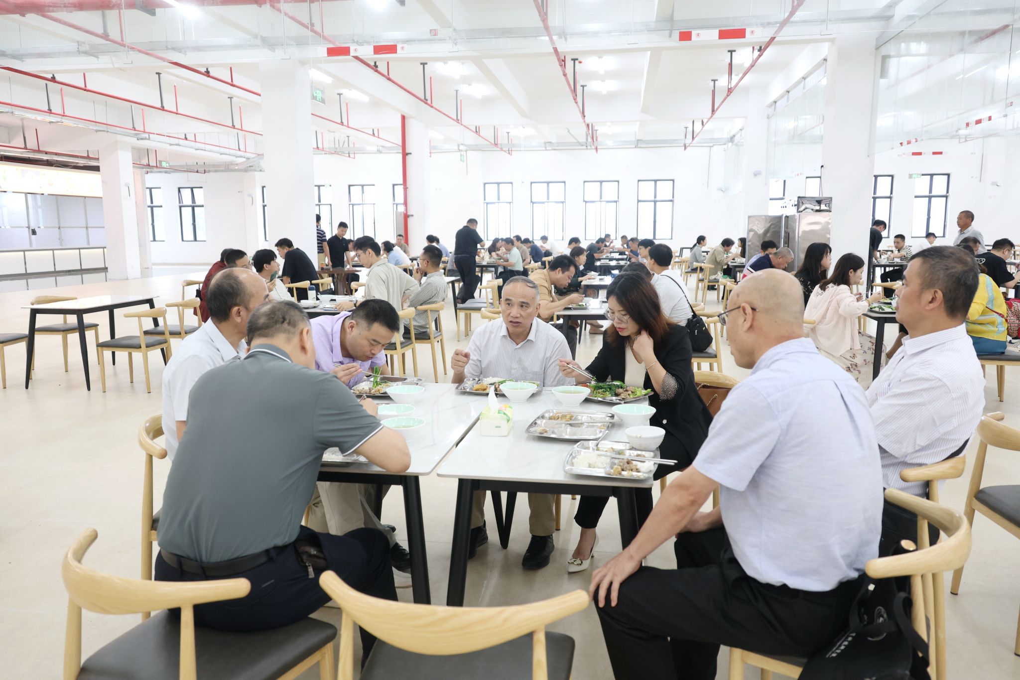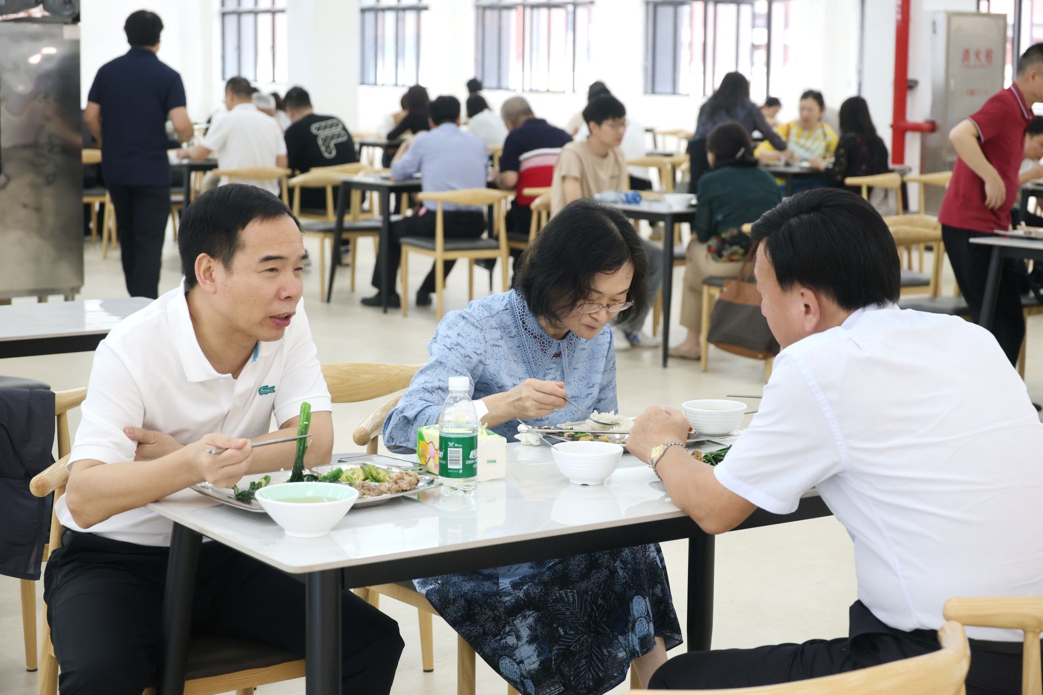 会前,蒋新华等校领导带队查看了新校区教学设施、图书馆、实训室、多媒体课室、员工食堂等现场情况。会后,全体与会人员一起走进新校区食堂,在宽敞明亮的餐厅内试吃了新校区食堂第一餐。