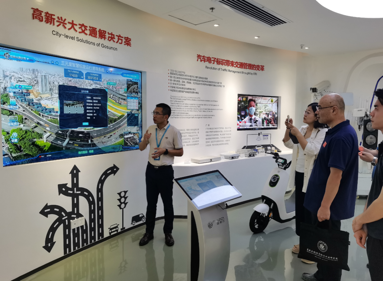 高新兴科技集团作为车联网、智慧交通、公共安全及智能制造等领域的领军企业,其卓越的创新理念和丰富的创新成果,是调研小组关注的焦点。在调研中,调研小组首先参观了高新兴科技集团的展示交流中心,深入了解了企业的研发流程、技术应用与产品创新。集团技术专家向一行来访人员详细讲解了多项前沿技术,包括生成式人工智能、智慧交通、智能视频分析、赋能自动驾驶融合创新解决方案等,并就这些技术在高校实训及实训室建设方面的应用与公司代表进行了深入交流探讨。
