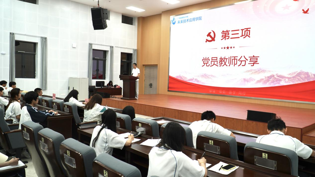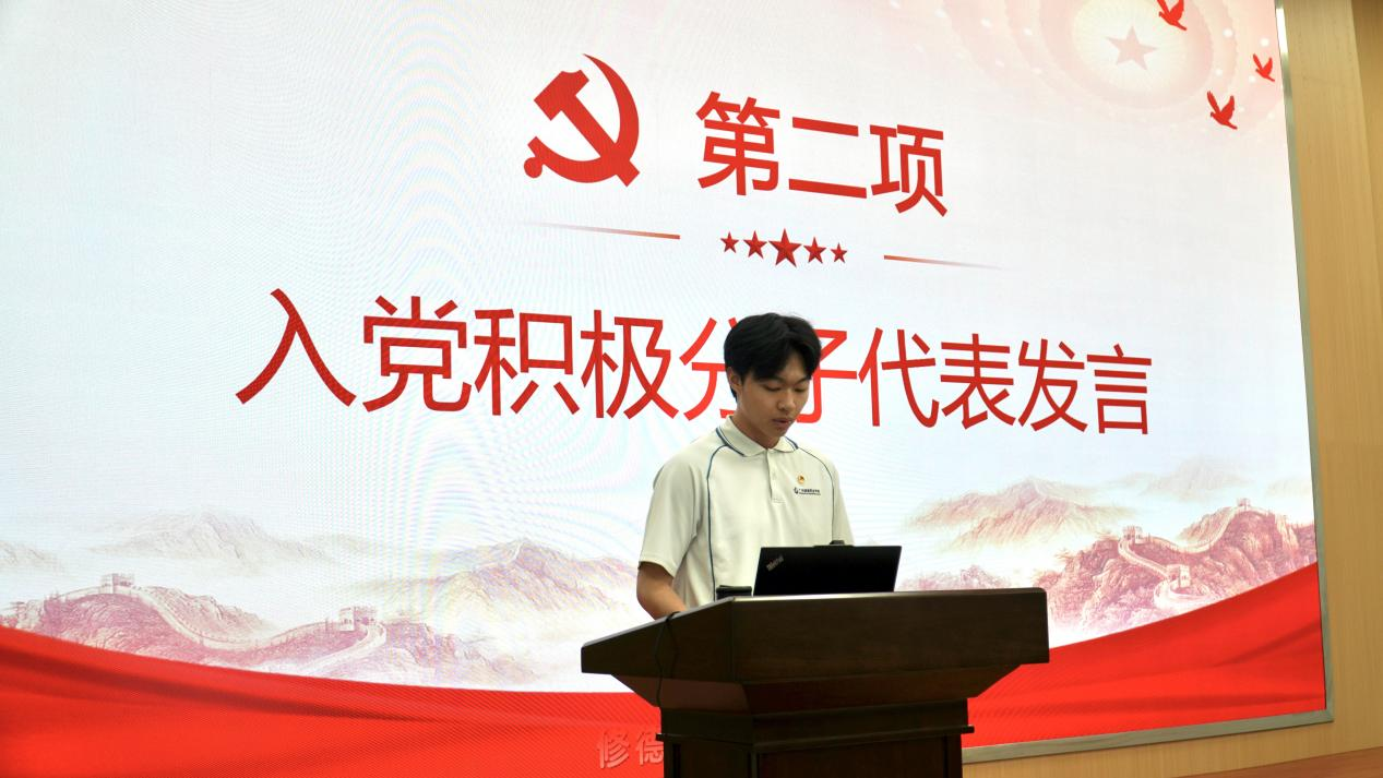 随后,党建办公室指导老师郑新分享了自己的入党历程。分享中,郑新回忆起自己员工时代,在看到身边优秀党员无私奉献、全心全意为人民服务后,深受触动,从此立下入党决心。在成长路上,无论是面对学业的压力,还是工作中的挑战,他始终以党员标准严格要求自己,用行动践行着对党的承诺 。“入党,不只是一个身份,更是一份责任与担当。”郑新告诫同学们,要将个人理想融入国家发展,在学习、生活中发挥先锋模范作用,主动关心集体、服务同学,不断提升思想觉悟,以实际行动向党组织靠拢。