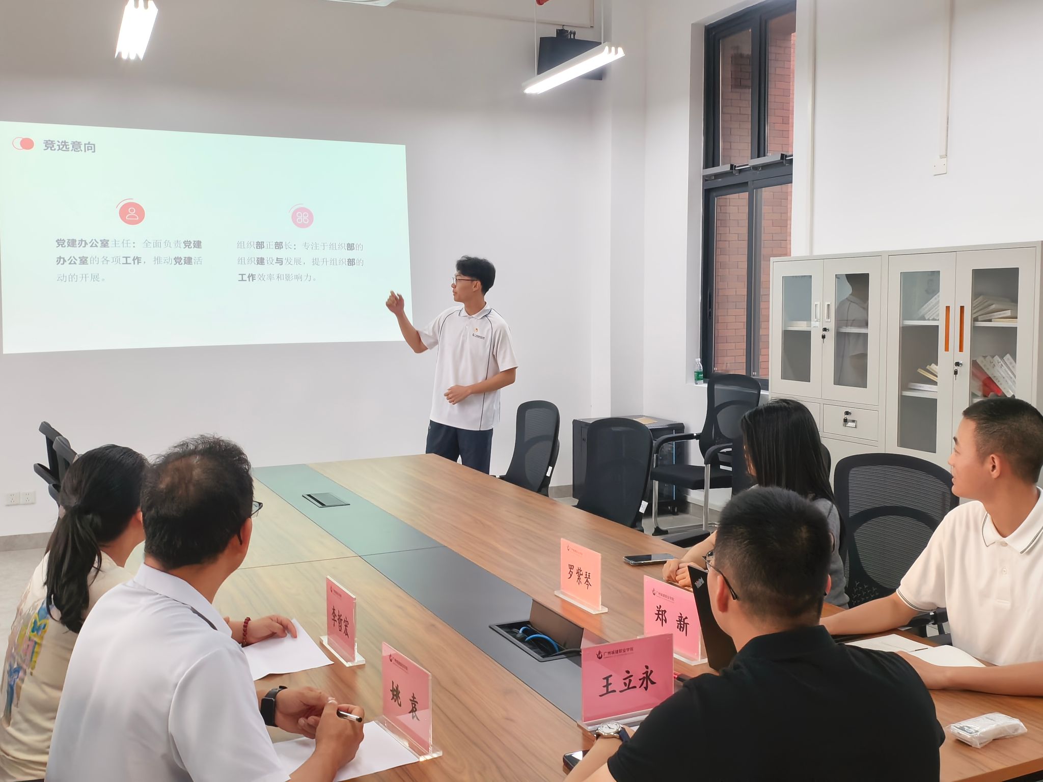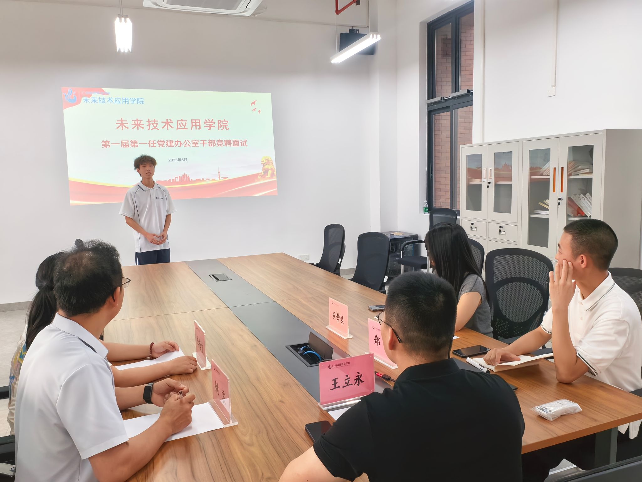 为加强公司党建工作队伍建设,选拔优秀员工骨干,公司党建办公室于5月12日在F4-603公司会议室成功举办了党建办公室第一届第一任员工干部竞聘面试。公司直属党支部副书记王立永、纪检委员姚袁、宣传委员李哲宏、党建办公室指导老师郑新、公司团委书记罗紫琴出席此次活动并担任面试官。
