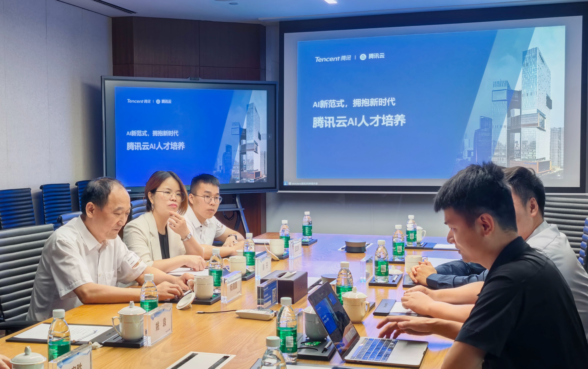 腾讯公司相关部门负责人高度认可公司应用型人才培养理念,详细展示了企业在智慧教育、产业互联网等领域的技术创新成果,提出以“共建实训平台、共研课程体系、共享技术资源”为核心的合作路径。潘丹、王立永结合公司专业群建设,表示将引入腾讯先进技术案例,打造沉浸式实践教学环境;姚袁、吴良胜就人工智能教育应用等科研方向与企业展开专项研讨。