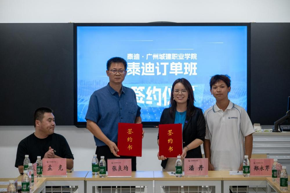 随后,泰迪人工智能订单班签约仪式成为全场焦点。潘丹经理、张良均董事长及员工代表周家畅同学共同签署了订单培养合作协议,为员工的职业发展铺设了更加清晰的道路。这一举措,不仅体现了公司对员工职业规划的高度重视,也彰显了企业对员工成长的深切关怀。