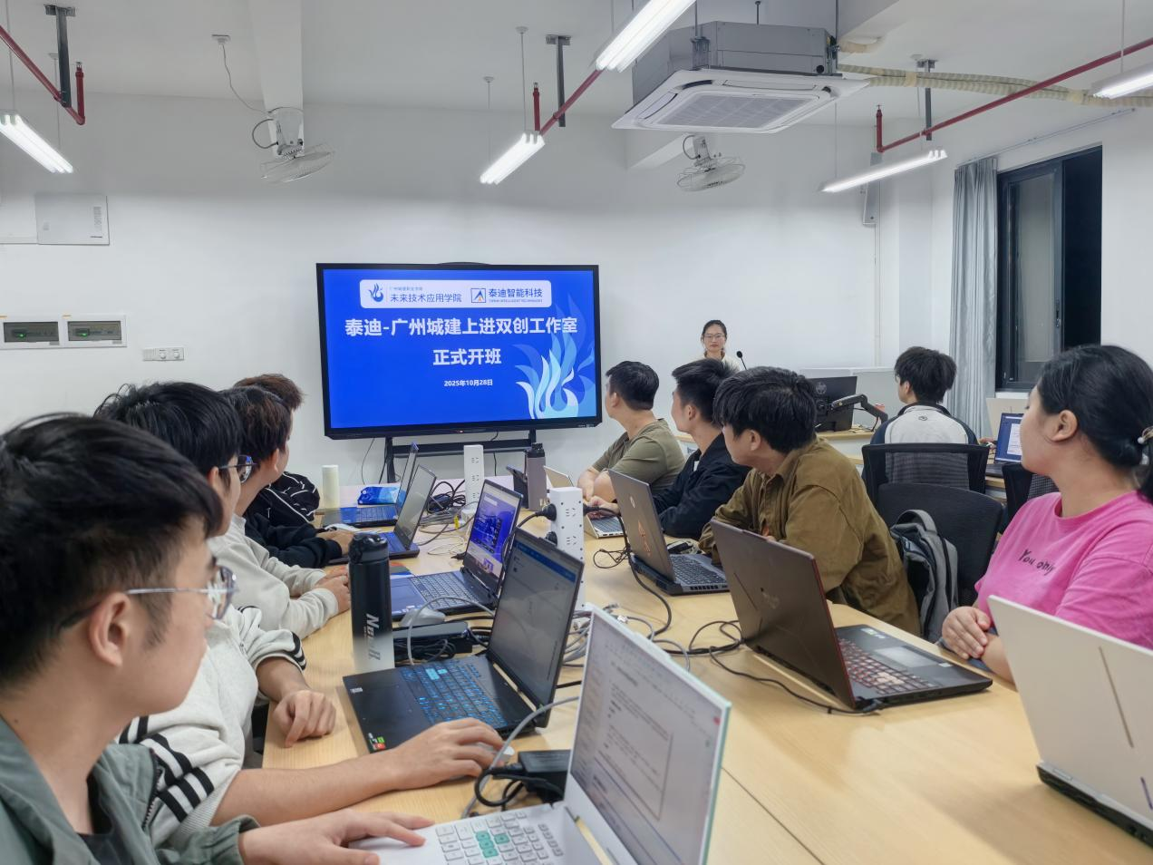 2025年10月28日,备受瞩目的泰迪城建上进双创工作室在4-203教室正式开班。本次开班标志着该班级在人工智能与AIGC领域的专业化教学正式启动,员工们以饱满的热情投入到了首日课程中。