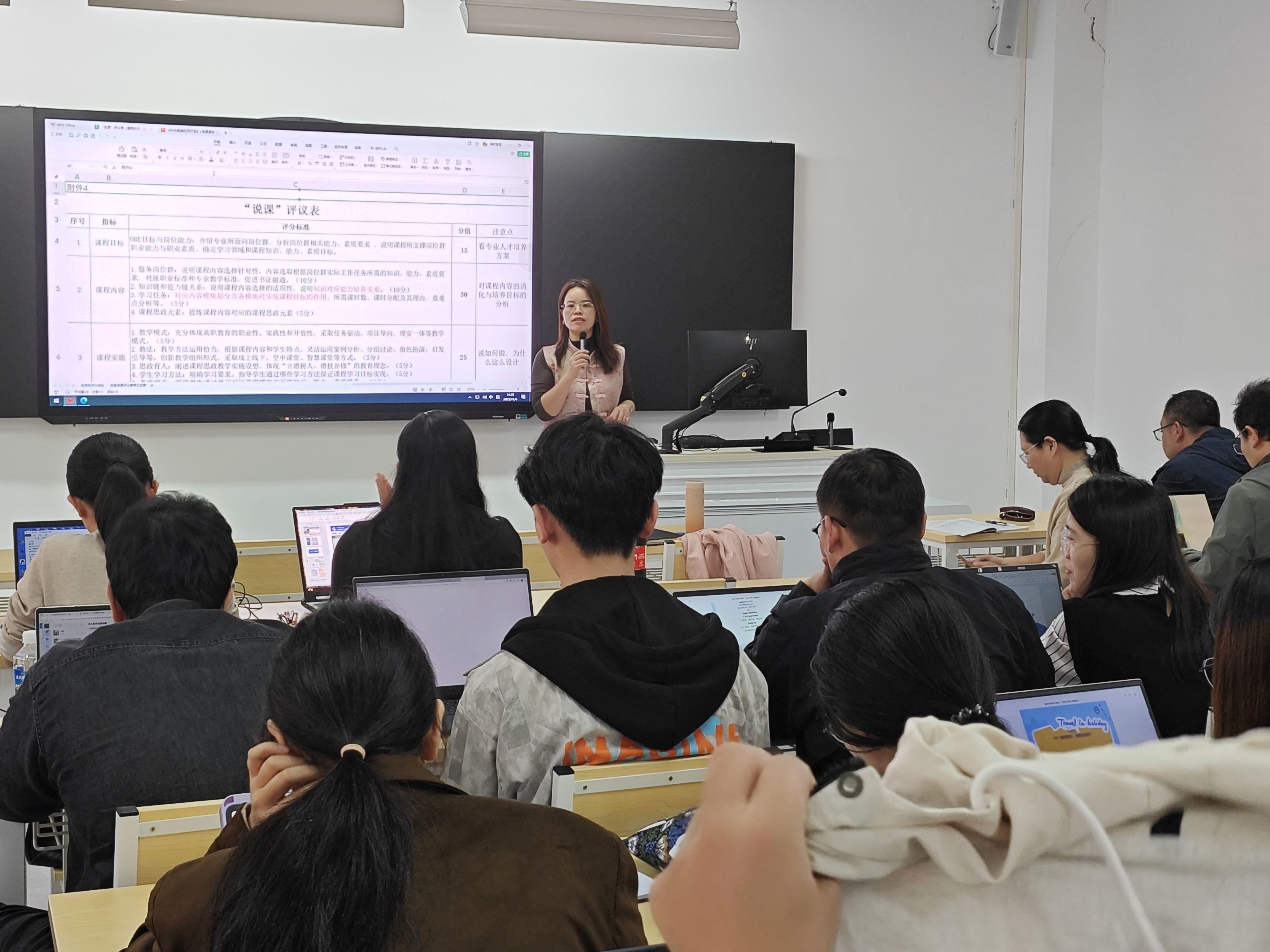 在说课展示后,郑永芹教学副经理结合校级说课比赛评分标准,从“教学目标与内容”“教学方法与手段”“教学评价与反馈”“课程特色与创新”四大维度进行了深度解读。她强调,说课需紧扣“以员工为中心”的理念,注重逻辑性、创新性和可操作性,同时需体现课程与行业需求的契合度。随后,活动进入自由交流环节,教师们围绕“如何平衡理论教学与实践环节”“如何设计分层教学任务”等议题展开热烈讨论,现场互动氛围浓厚。