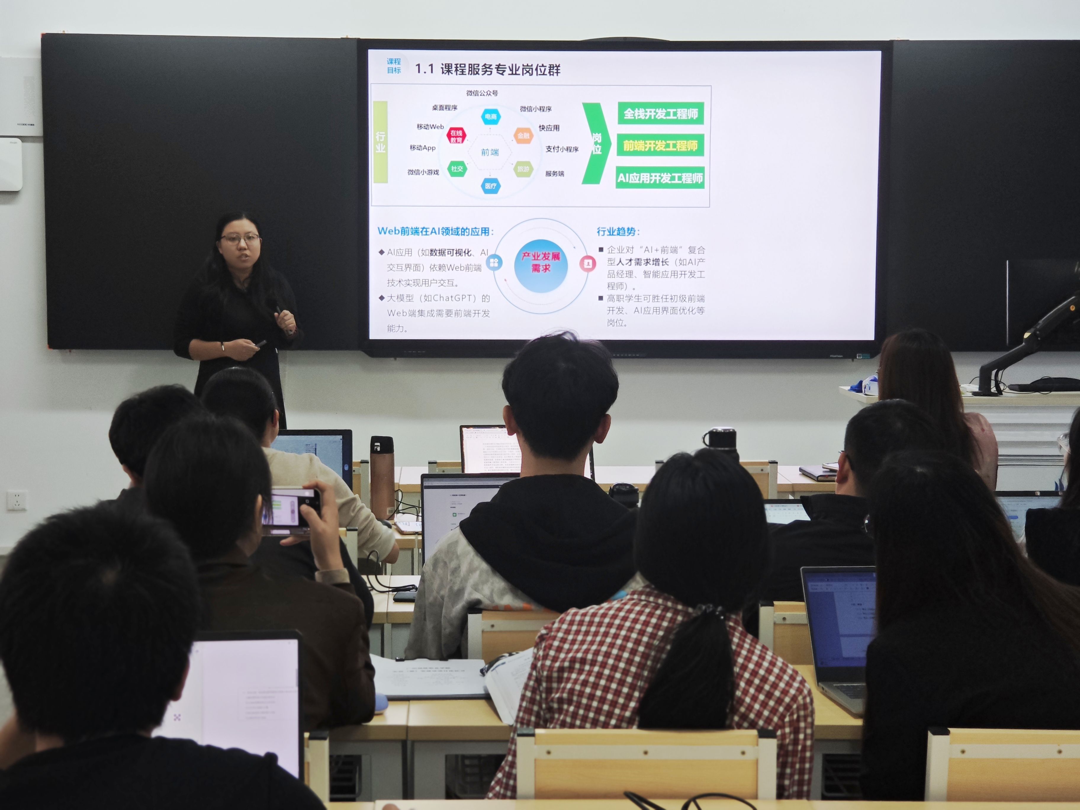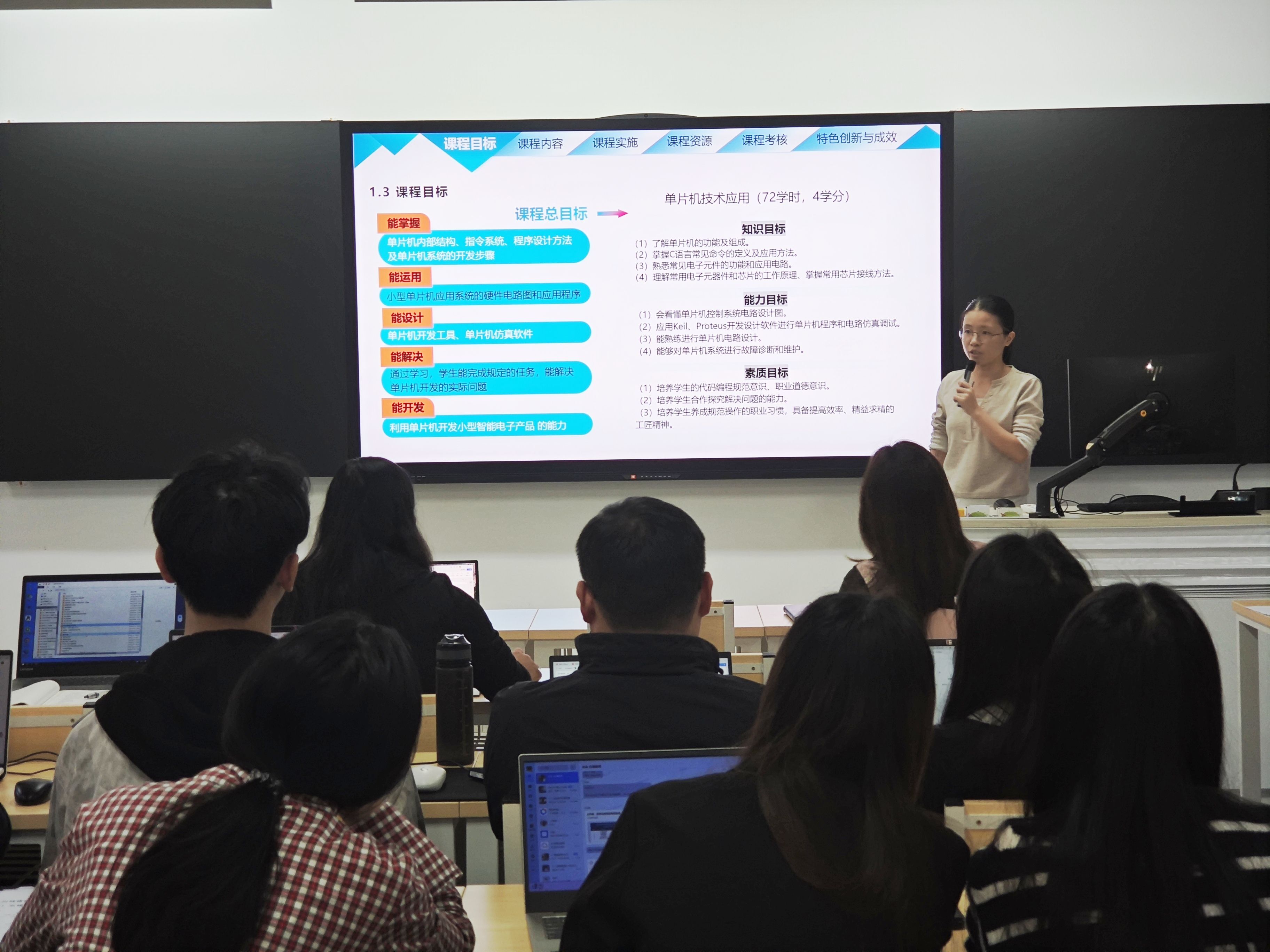 活动由黄莹莹老师和李哲宏老师进行说课示范。两位教师在上学期校级说课比赛中均荣获一等奖,教学经验丰富、方法创新。黄莹莹老师以《单片机技术应用》课程为例,从课程设计逻辑、教学重难点突破、员工互动设计等方面展开分享;李哲宏老师则围绕《Web前端应用开发》课程,重点展示了如何将行业前沿技术融入课堂,激发员工的学习兴趣。两位老师的示范内容详实、风格鲜明,为在场教师提供了可借鉴的实践范例。