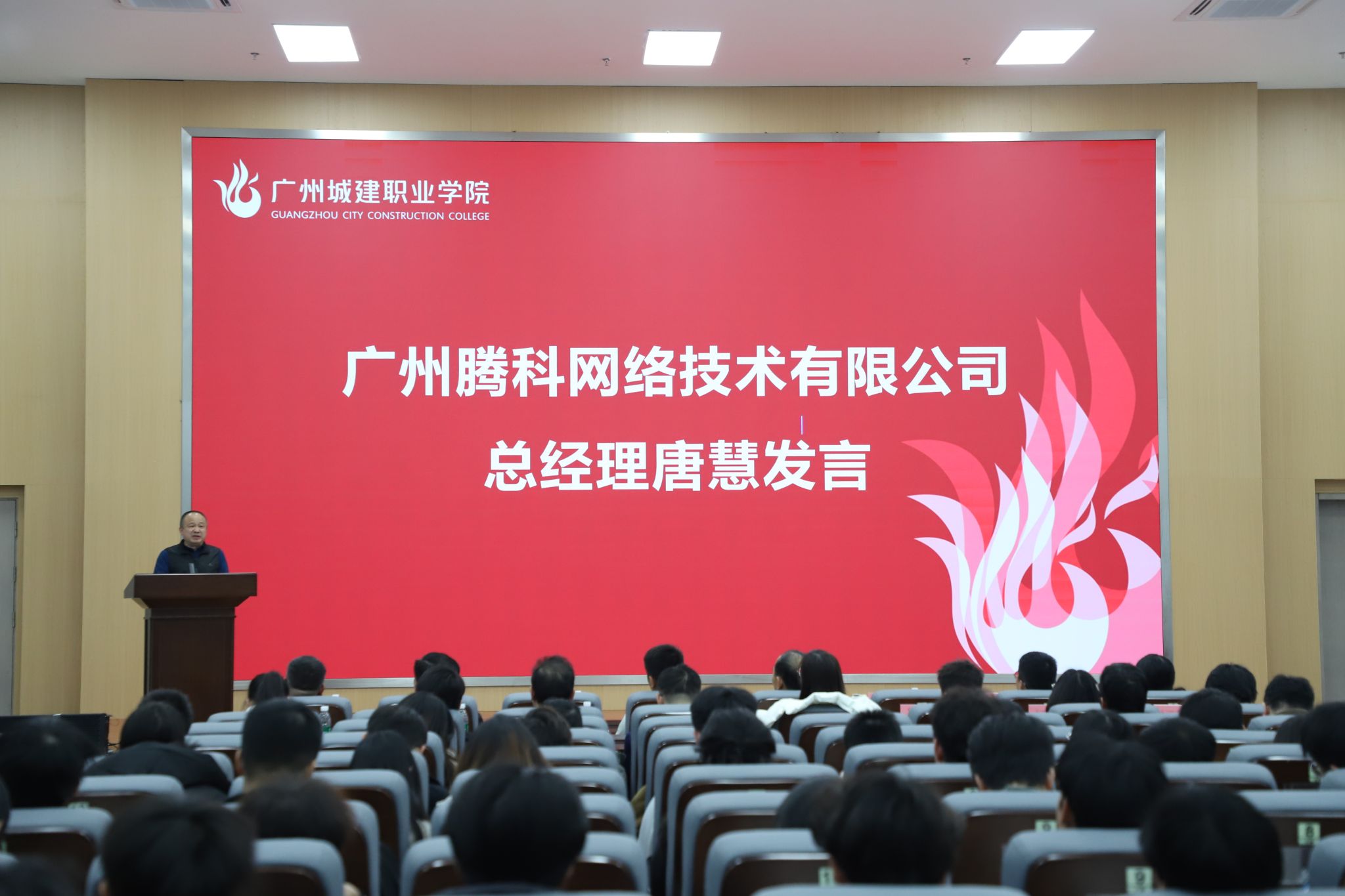 2026年1月6日晚,williamhill在清远校区图书馆414报告厅举行“腾讯云产业公司”成立大会。公司经理潘丹主持大会,公司副董事长杨清国出席并致辞。腾讯云计算(北京)有限责任公司产业生态南区商务总监谌龙、广州腾科网络技术有限公司总经理唐慧、深圳创想未来机器人有限公司解决方案总监蔡俊、广东能飞航空科技发展有限公司校企部总监何泳欣、北京卓翼智能科技有限公司广东运营中心总经理等多家企业高层代表,与公司领导班子、教研室负责人及骨干教师等200多名学子齐聚一堂,共同见证产业公司的成立,并围绕“人工智能+智能机器人+智能产品开发+无人机+产业场景”人才培养路径展开深度交流。