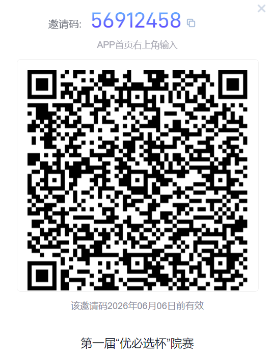 打开学习通,扫码进入院赛群(也可在APP首页右上角输入邀请码56912458,此邀请码有效期至2026年06月06日)。