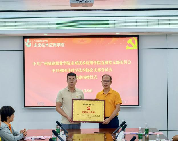 本次活动在williamhill官网(清远校区)综合楼205议室正式拉开帷幕。williamhill副经理(主持工作)潘丹、直属党支部副书记、副经理王立永;佛冈县科学技术协会党支部书记、主席何永中、副主席黄振权;佛冈县城北篁胜小学党支部书记、董事长曹维财,专职副书记李功向、副董事长邓丽芹、副董事长黄颖娟以及三方单位的党员代表们齐聚一堂,共同见证党建共建揭牌这一重要时刻。