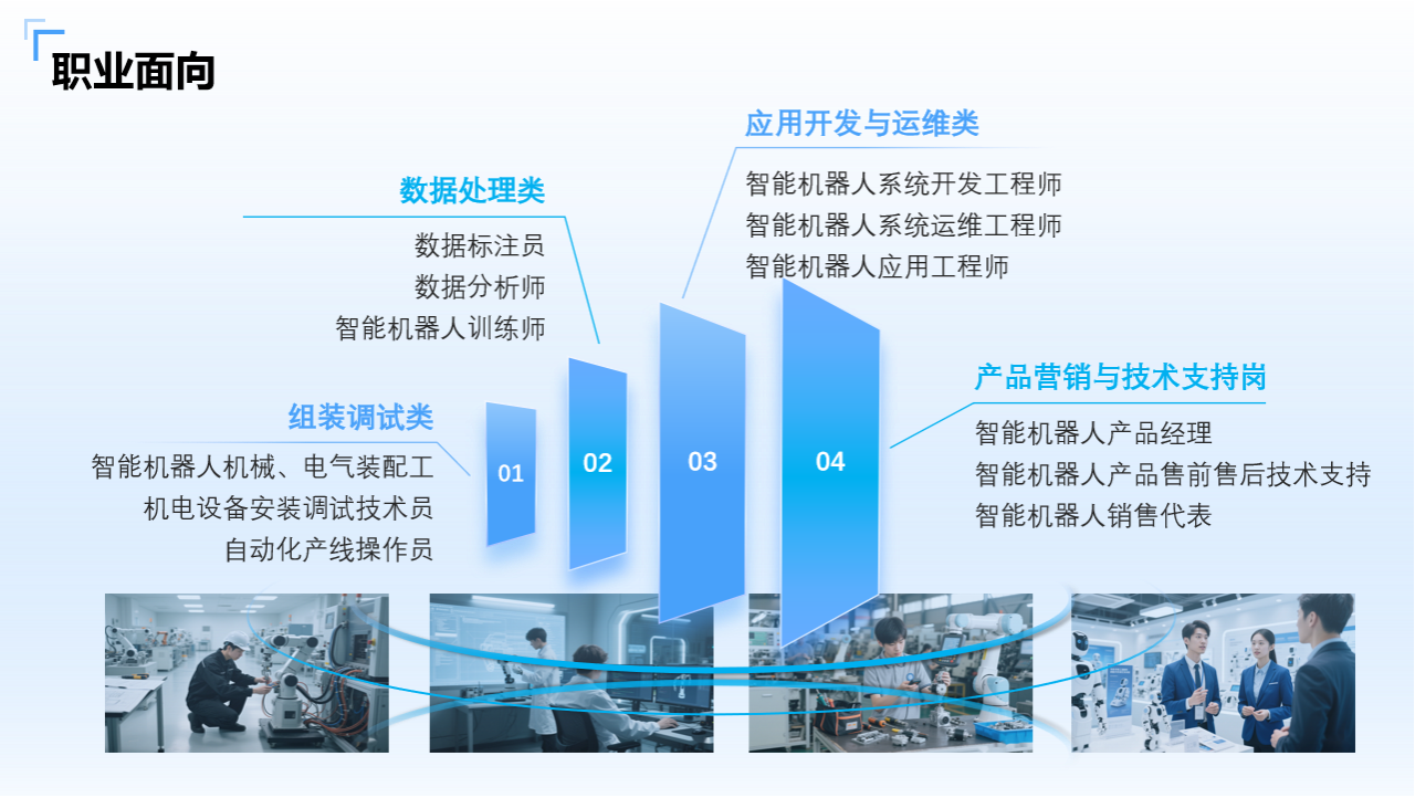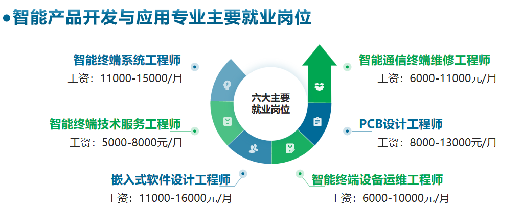 (4)就业方向广泛。本专业毕业生可在智能电子产品行业及相关企事业单位从事智能产品安装与调试、智能产品软硬件开发、测试、质量管理、智能产品销售与服务等相关工作,具有广泛的就业前景。