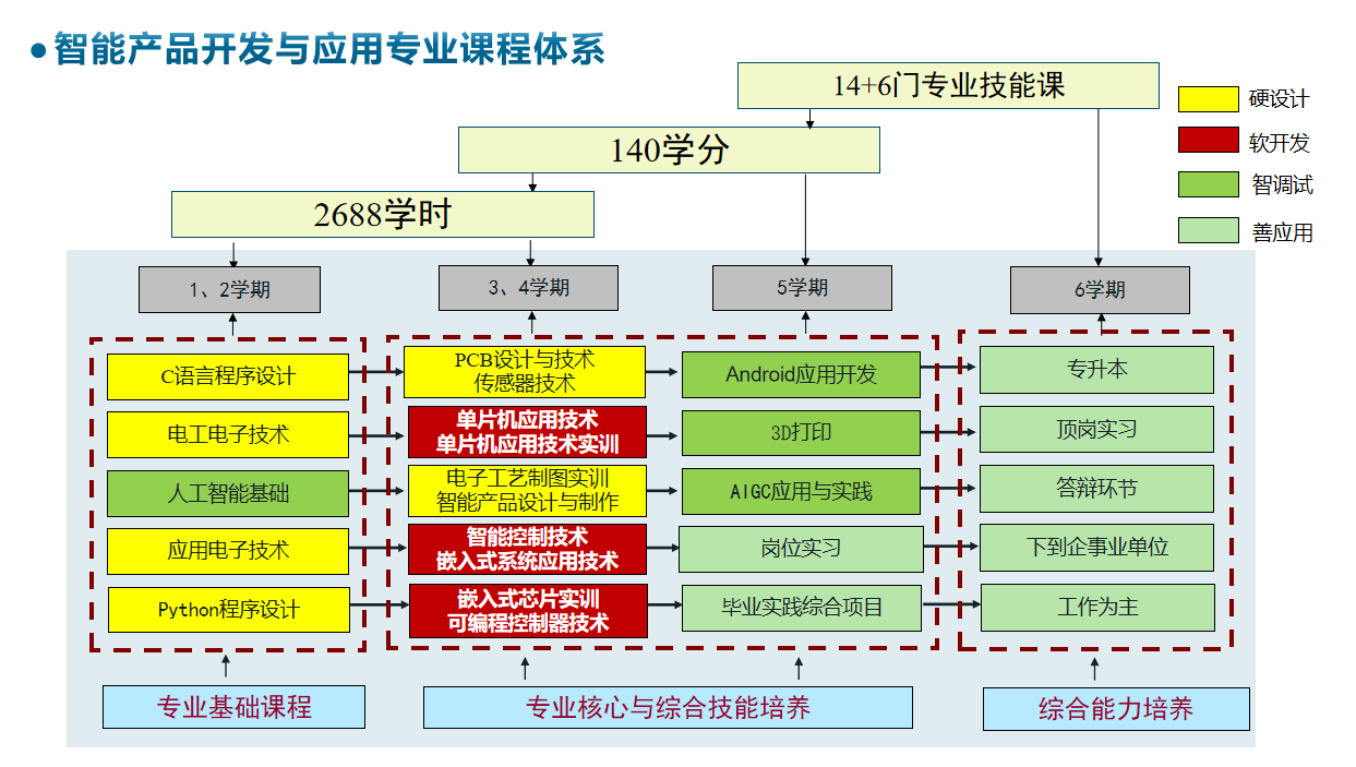 智能产品开发与应用专业是一门综合性较强的技术学科,主要围绕智能硬件、软件开发以及智能系统集成等领域展开。员工将学习电工技术、嵌入式芯片实训、智能产品设计与制作、单片机应用技术、PCB设计与制作等课程。